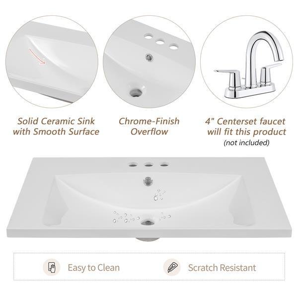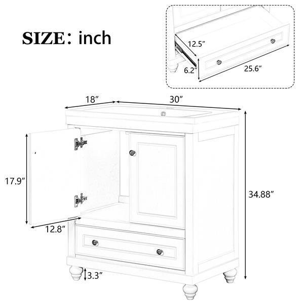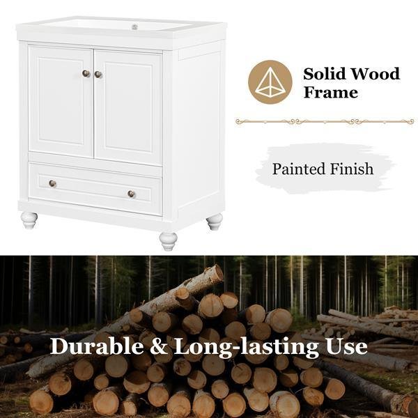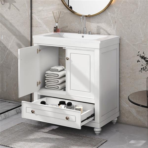 Home > 30" Bathroom Vanity with Sink, Combo, Cabinet with Doors and Drawer, Solid Frame and MDF Board, White