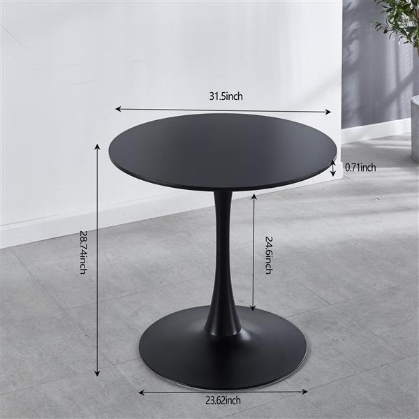 31.5"Black Tulip Table Mid-century Dining Table for 2-4 people With Round Mdf Table Top, Pedestal Dining Table, End Table Leisure Coffee Table