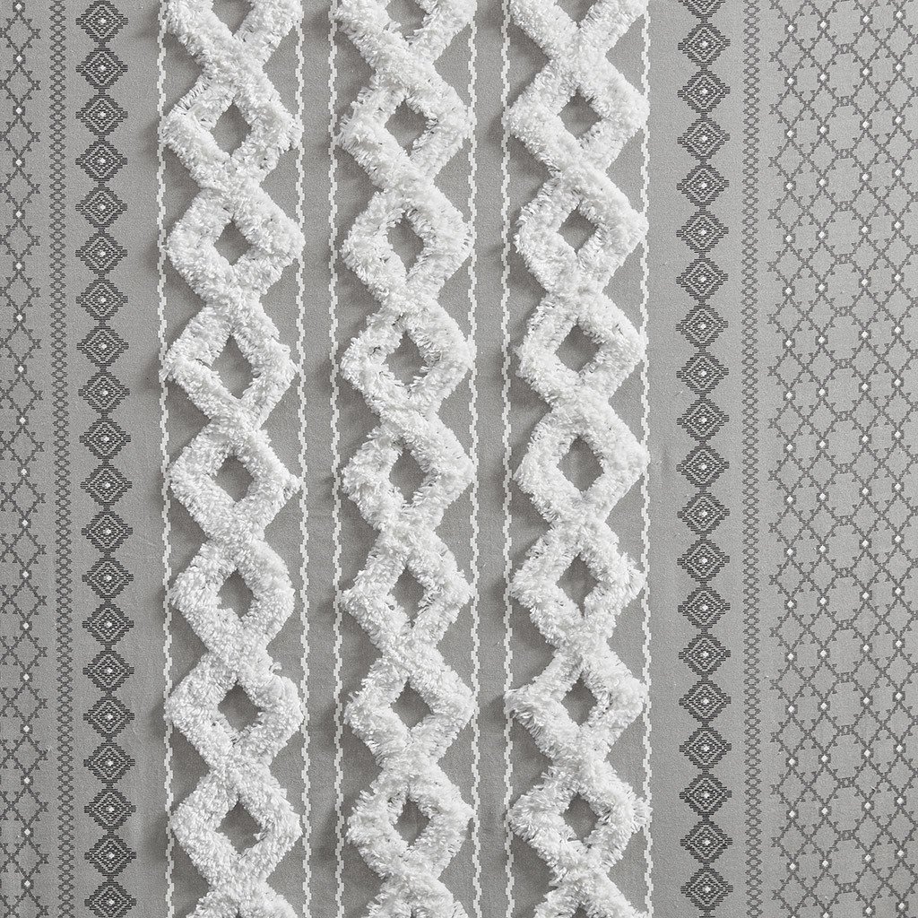 The INK+IVY Imani Cotton Printed Window Panel with Chenille Stripe and Lining offers a chic and casual update to your home. This gray window panel features a geometric print with a tufted chenille stripe trim, for a textured artisanal look and feel. A lightweight white cotton lining on the reverse softly filters light, while providing better drapability and added privacy. In addtition, this 100% cotton curtain panel is also OEKO-TEX certified, meaning it does not contain any harmful substances or chemicals for the best in quality comfort and wellness. Each panel is finished with a rod pocket top for easy hanging, and back tabs for a more clean and tailored finish. This window panel is sold as a single and 2 window panels must be purchased to cover any standard size window. Complete the look with coordinating bedding sets and bath decor, available and sold separately.