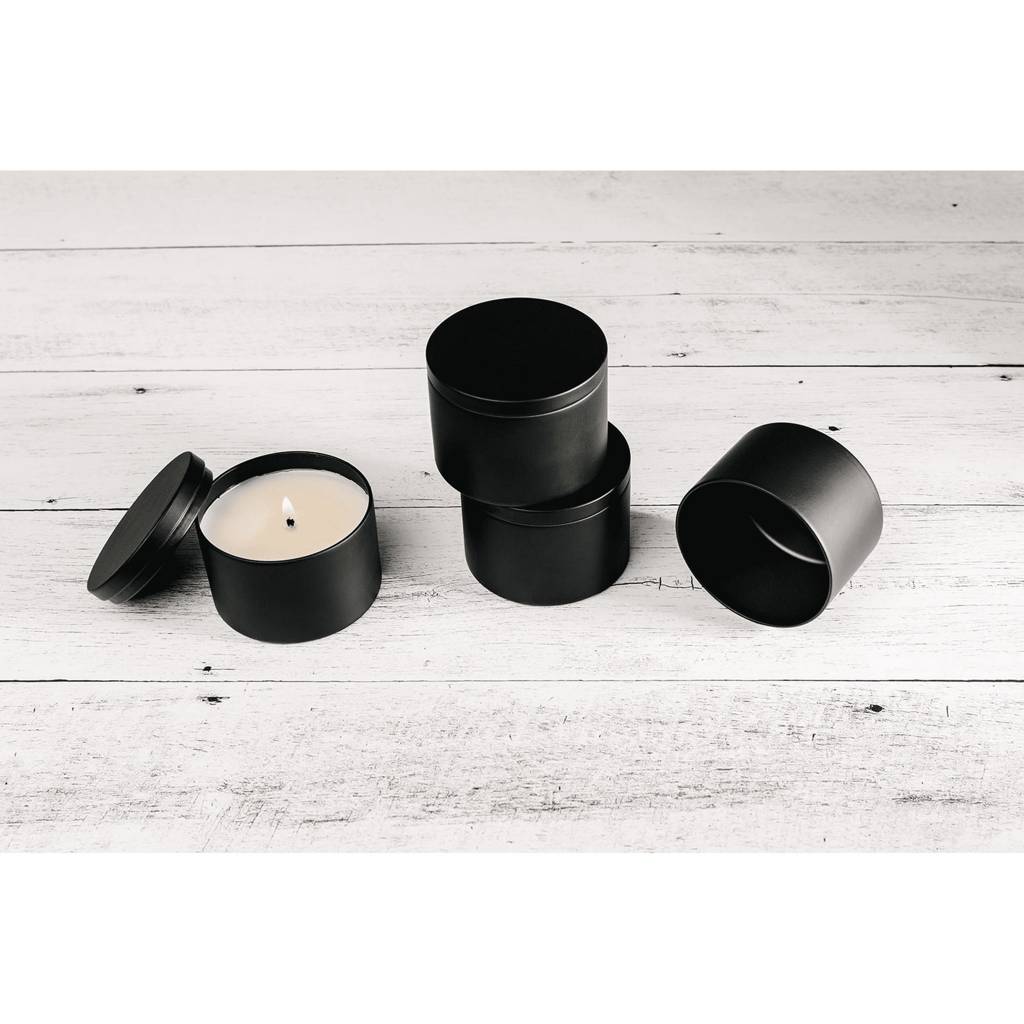 Introducing our new, 24 pack 8 oz. Black tin jars made from premium tin and perfect for diy candle making. These tin containers are not only great for crafting candles but also for storing small items or decorating your home. Ideal for aromatherapy candle making, this empty candle cup offers a sleek and stylish look that adds warmth to any room. These versatile jars are perfect for great crafting, candles, and storage in bulk, making them perfect for your creative projects. Get your hands on these beautiful 8 oz. Black tin jars and let your creativity run wild!