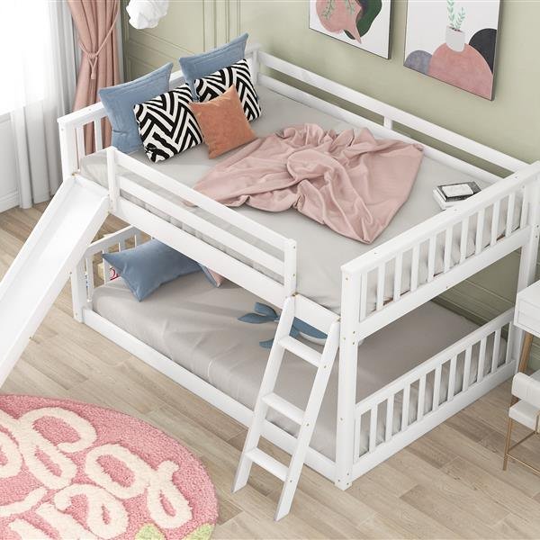 Full over Full Bunk Bed with Convertible Slide and Ladder, White