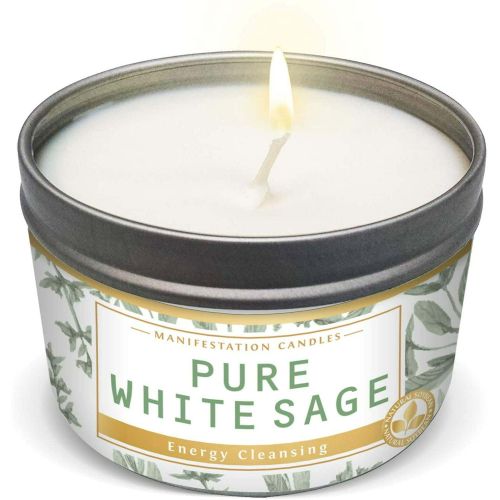 6 OZ NATURAL WHITE SAGE CANDLE FOR AROMATHERAPY − Made of naturally cultivated White Sage and 100% Natural Soy Wax (SGS and MSDS Report available - No Petroleum or Paraffin Wax). This blend of earthy sage creates a natural harmony in the home and body. Perfect to smudge away negative energies and set a new intention. Fill in the blank with your intention! Love, light, and positive energy goes into every candle. * SMUDGE AWAY NEGATIVE ENERGIES − Smudging is a cleansing ceremony that involves burning white sage in a manner that fills the home with the fragrance of the smoke. It is used to clear negative energy from people, places, or even objects and can be done as often as needed. Research shows that thujone, found in sage, is mildly psychoactive and enhances intuition. * CLARITY FOR INTENTION SETTING − Start your smudging ritual by decluttering your home and taking the time to think about your intention. It should be something you would like for your home or space, something meaningful for you. Choosing to sit and let go of negative thoughts in a ritual like this improves your mental clarity, allowing you to set a genuine intention for yourself. * HOME ENERGY CLEANSING − It’s a good idea to have a door or window open while smudging. The negative energy and negativity have to have someplace to go! * VIBRATION RAISING − Sage can do wonders to increase relaxation and reduce stress because it’s filled with negative ions, directly linked to an improved sense of well-being. * CHAKRA HEALING − The Latin word for sage salvia stems from the word heal. It's devoted to clearing, protection, and blessings. The use of sage can be traced back nearly 2,000 years to Indigenous Americans and shamans, who used it to release or cleanse negative energy from conflicted, angry or sick people. This healing candle was produced for smudging, purification, stress relief, anxiety soothing and ultimately providing an energy boost.