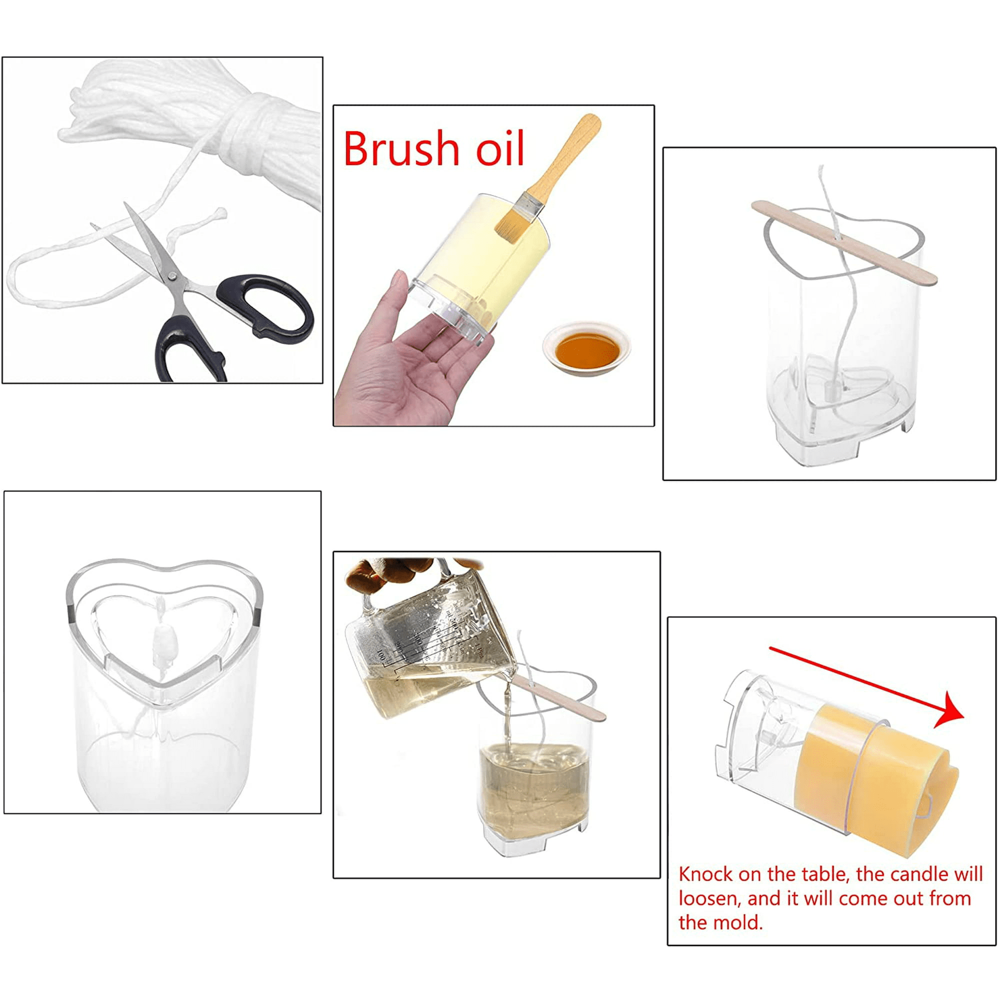 Milivixay 3pcs heart candle molds - 90 ft. Of wick,mold sealer and 3pcs wick clips included as a gift - plastic candle making molds-perfect for heart candles.