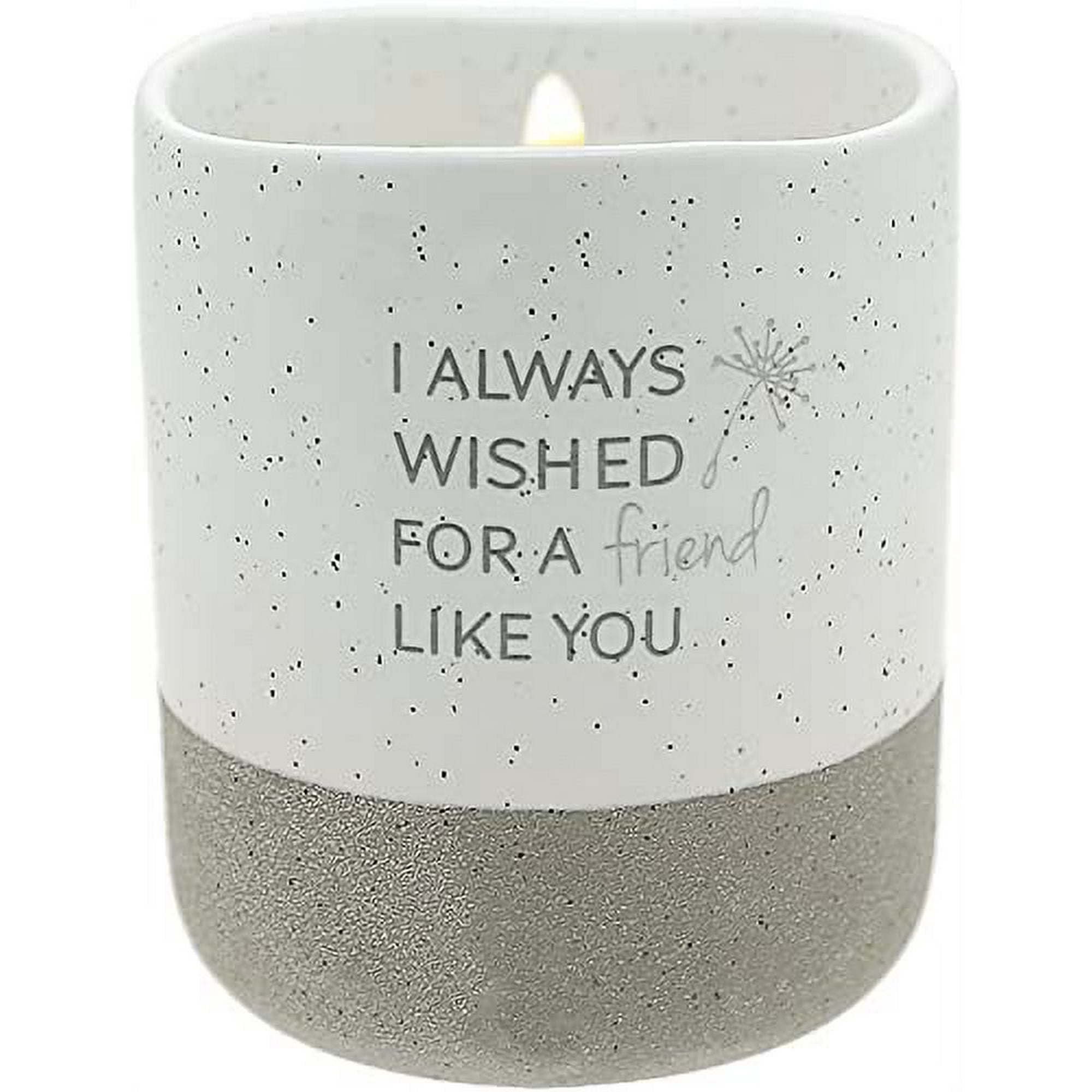IN-HOUSE DESIGN: The new & innovative candle offers a unique message for your loved one within the wax as time progresses. You will begin to see the black dandelion and "Amazing Friend" sentiment after about 10 minutes. As you watch, the entire decal will appear after 50 minutes. Then, the message will hide again and reappear with each burn. The front of the candles has a simplistic "I Always Wished For A Friend Like You" decal accompanied by a light gray dandelion.