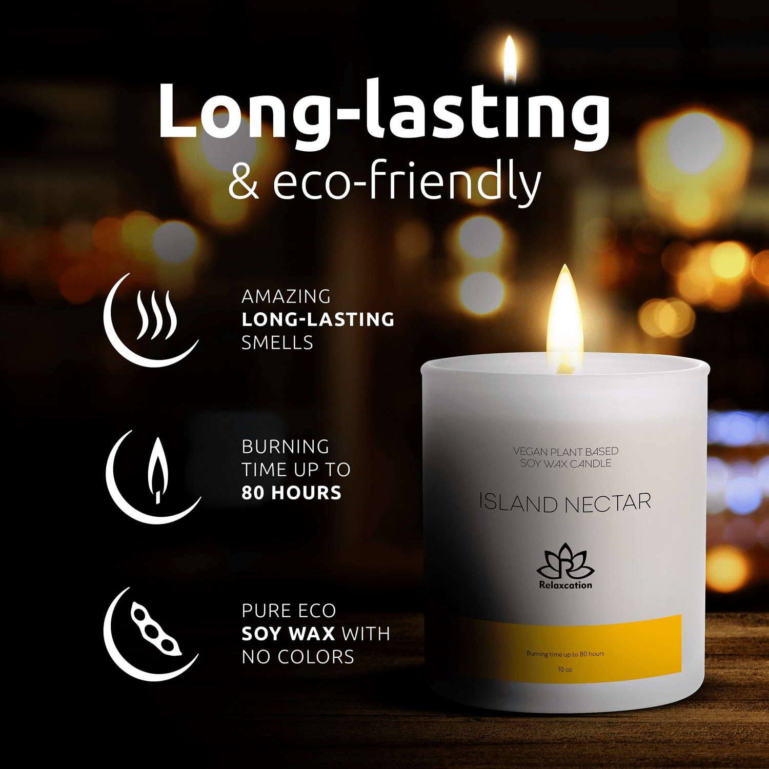 Soy Wax Candle in Glass Jar Island Nectar Clean Burn up to 80 Hours Handmade in USA Natural and Safe by Relaxcation 10 oz Soy Wax Candle in Glass Jar Island Nectar Clean Burn up to 80 Hours Handmade in USA Natural and Safe by Relaxcation 10 oz Soy Wax Candle in Glass Jar Island Nectar Clean Burn up to 80 Hours Handmade in USA Natural and Safe by Relaxcation 10 oz