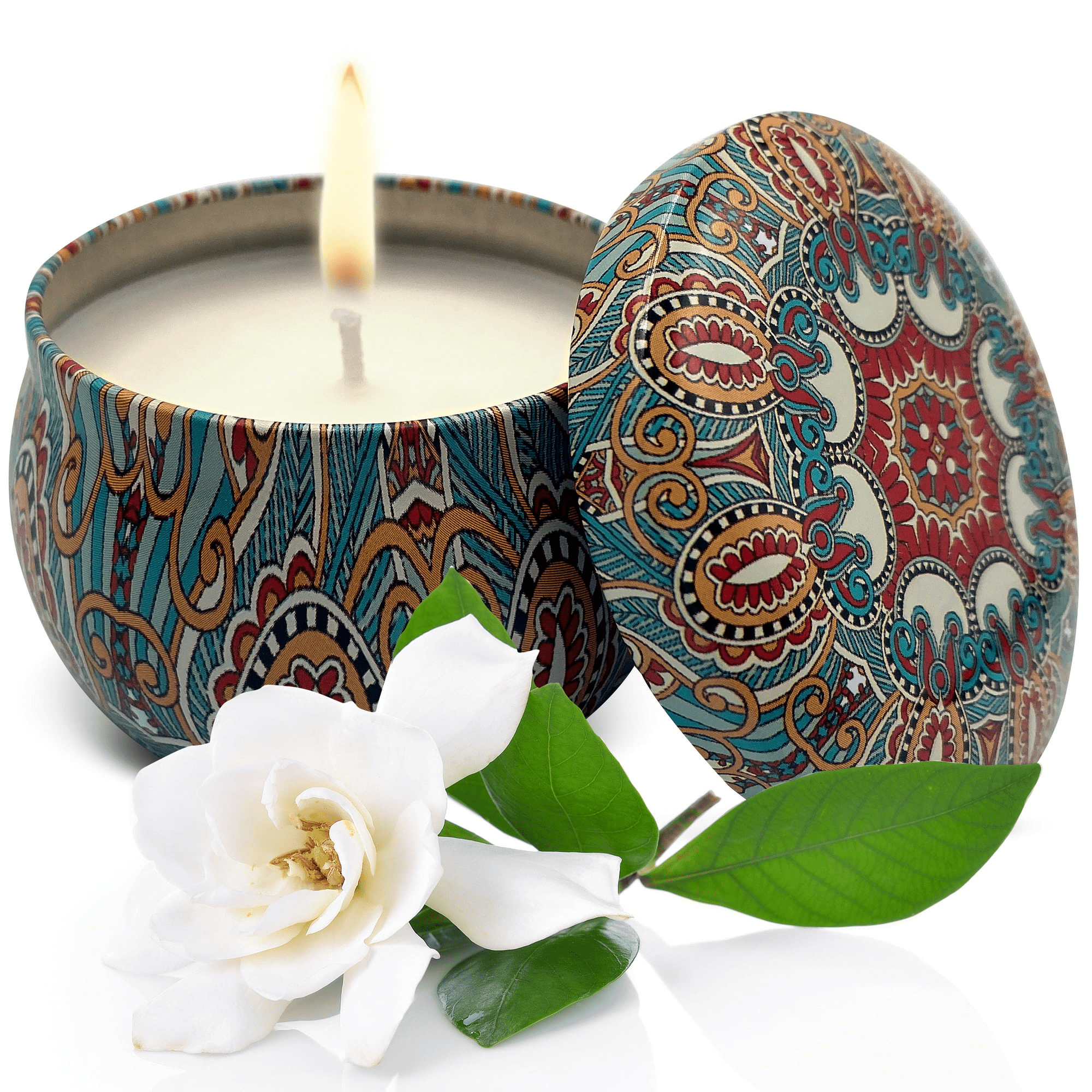 1 white gardenia scented soy wax candle in decorative aroma tin box aromatherapy candle 6 oz handmade in the usa long burning time of up to 25 hours!!! Eco-friendly: the wax used in relaxcation handmade candles is produced from the oil of soybeans in a manner that is mindful of our environment. It is biodegradable. Soy wax is also less toxic when compared to paraffin wax.