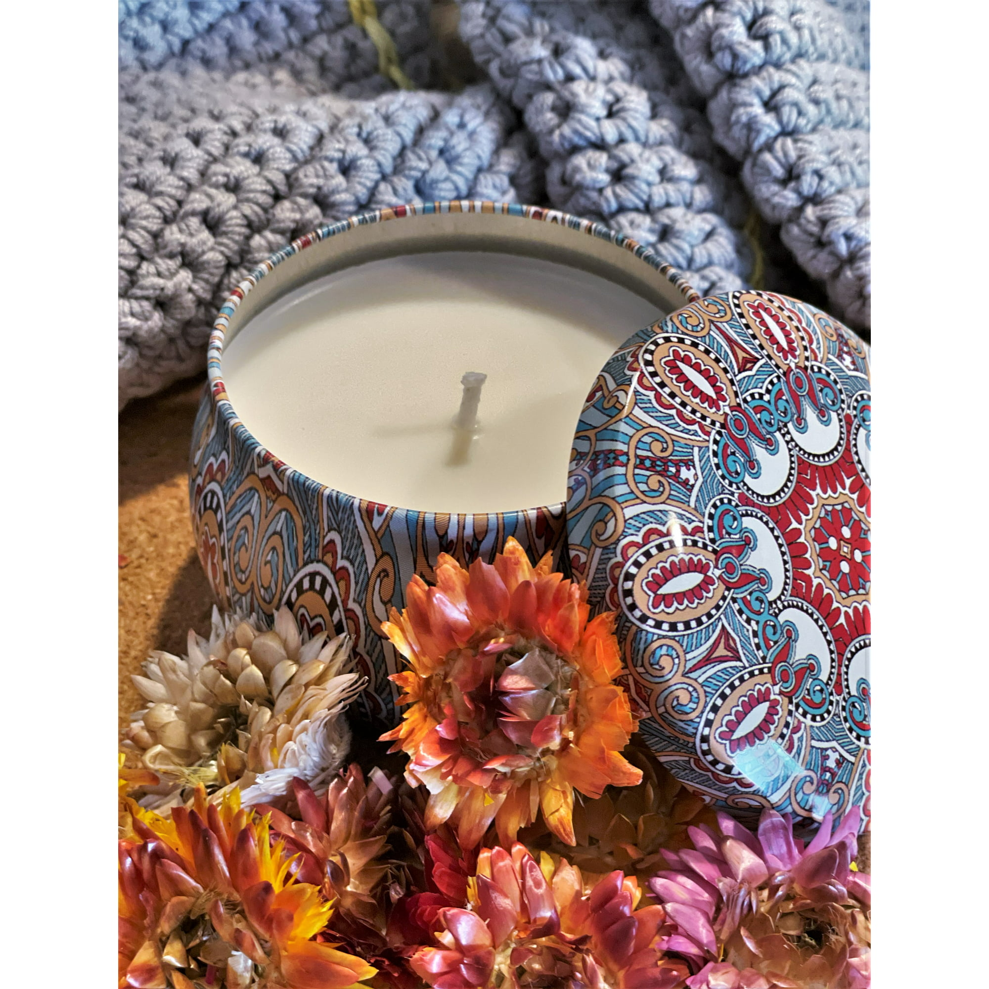 Decorative giftable metal tin - this candle comes in a beautiful multicolor metal tin that's perfect for gift-giving! The sleek design is sure to please, and the tin can be reused long after the candle is gone.