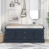 DescriptionProduct TypeBar StoolsWeight Capacity250lbsFrame MaterialMetal+Manufactural WoodLeg MaterialMetalLeg Material DetailsIronUpholstered MaterialVelvet/Faux Leather/BoucleFill MaterialFoamSeat Cushion IncludedYesRemovable Cushion CoverNoRemovable Seat CushionNoArm IncludedNoSwivelYesNumber of Chairs Incuded2Overall Size20*18.9*44.1"Overall Product Weight22Back Height - Seat to Top of Back14.6"Seat Height - Floor to Seat26.4"-35"Seat Width - Side to Side18.1"Seat Depth - Front to Back18.9"Adult Assembly RequiredYes/10 min.Classic Style: The storage bench with cushions brings decorative and functional storage items to your entryway,hall, mud room or laundry room. There is magnetic attraction in the door and 4 round handles are simple and practical, which is convenient for you to open and close.High-quality Materials: The storage has a pine frame, which makes its structure firm and stable, and it is not easy to bend. The rest is made of high-quality MDF, and the whole storage can bear 2 pounds. The interior of the storage is an adjustable shelf with three heights for you to adjust.Multi-purpose: Closed 4 doors meet the needs of multi-functional storage at home, and are ideal for storing books, shoes, umbrellas and other small items, which can be hidden by closing the door to better keep the living room, corridor and entrance clean and tidy.Comfortable Seat: The detachable linen cushion provides comfort for the storage stool, and you and your family can put on shoes when sitting instead of squatting, which provides intimate convenience for you. Cushion thickness: 2.2 inches.Full/Partial assembly required. This storage bench comes with detailed instructions, and it can be installed step by step following the instructions, which can help you complete the assembly as soon as possible.