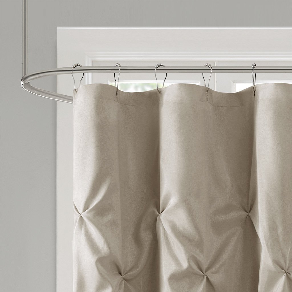 Update your bathroom instantly with the Laurel Shower Curtain. Its soft taupe color paired with large tufting creates a contemporary look while adding beautiful texture to your space. Made from 100% polyester polyoni, this semi-sheer shower curtain is lightweight with a nice soft sheen and machine washable for easy care. A water repellant liner is not included and highly recommended. Complete the collection with coordinate bedding, available and sold separately.