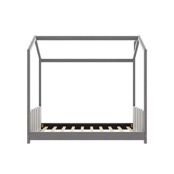 Home > Twin Size Velvet House Bed Wood Bed, Gray