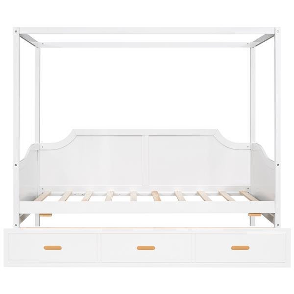 Twin Size Wooden Canopy Daybed with 3 in 1 Storage Drawers,White