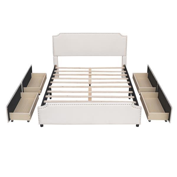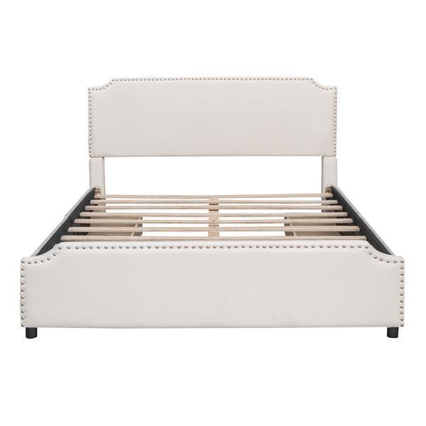 Home > Upholstered Platform Bed with Stud Trim Headboard and Footboard and 4 Drawers No Box Spring Needed, Velvet Fabric, Queen Size (Beige)
