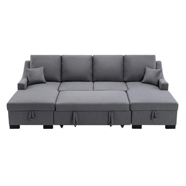 Upholstery Sleeper Sectional Sofa with Double Storage Spaces, 2 Tossing Cushions, Grey