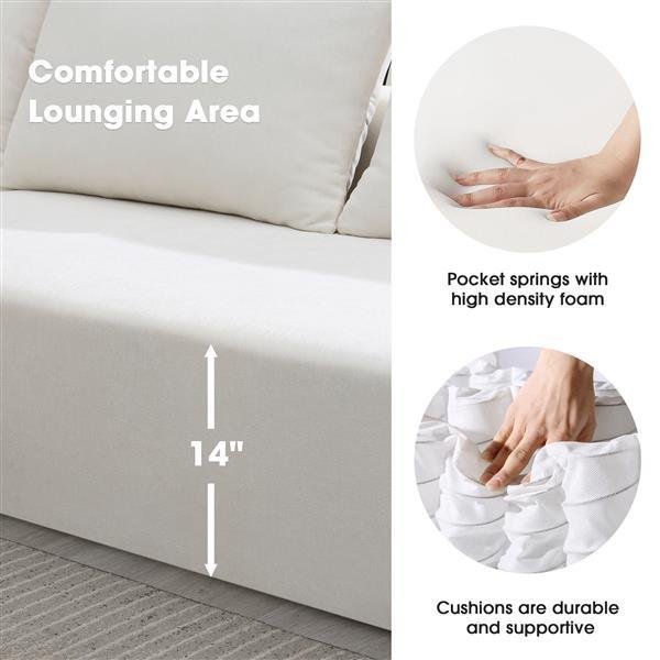 Product DescriptionThis convertible sofa brings spare sleeping space and glam style to your living room. Designed to seats up to four guests, it converts into a twin-sized bed that's just right for overnight guests. This sofa is wrapped in soft, skin-friendly chenille Fabric upholstery, the sofa is completely foam-filled and its cushions are filled with foam and supported by springs to help prevent sagging over time. This Upholstered sofa features square arms and includes two pillows. And we love that the chaise allows you to place down a tray of snacks or kick up your feet after a long day. No assembly required.FeaturesProduct TypeConvertible Sofa SetDesignModular sectional sofaProducts includedLoveseat, ChaiseSeating Capacity4Upholstery Material100% polyesterFrame MaterialFoamSeat Fill MaterialFoam; Pocket springSeat ConstructionPocket springBack Fill MaterialPolyesterRemovable CushionsNoTufted CushionsNoPillows IncludedYes,2 includedProduct CareLightly brush or vacuum frequently to remove dust and grime. Spot clean using a mild water-based solvent. Pre-test cleaning methods on a hidden surface. A professional cleaning service is recommended for an overall soiled condition.Arm TypeSquare ArmSupplier Intended and Approved UseResidential UseCountry of OriginChinaAdult Assembly RequiredNoProduct DimensionsOverall109*68*28.5" (L*D*H)Chaise dimensions68*40"(L*D)Loveseat dimensions68*40"(L*D)Arm Height - Floor to Arm19.5"Seat Height- Floor to Seat14"Cushion thickness14"Pillow size15*15"Weight Capacity440lbs / seatNoticeThe packaging of the product package may be updated at any time, please refer to the actual product received.All colors on our website are for reference only, actual product colors may vary a little bit, due to different colour settings of every screen device.Please note: most of our sofas are hand-measured, therefore the dimensions are for reference only, and may marginally deviate.The cushions are vacuum-packed. After opening the package, please allow 72 hours to let it come back to its original shape.Keep it looking its best√ Blot spills immediately with a clean, absorbent white cloth.√ For indoor use only.√ Avoid direct sunlight.√ Do not leave newspaper or other printed material lying on surface.√ Dimensions of bench-made upholstery may vary slightly.√ Vacuum regularly.√ Spot clean using distilled water and water-based cleaning agents, foam or mild water-free cleaning solvents.√ Always test a small inconspicuous area first.Minimalist Modular Sectional Sofa Set:The modern modular L-shape sofa couch features a simple style, focusing more on clean lines and premium chenille fabric to bring a timeless and chic to your home, sure make your living room the center of attention.Comfortable Lounging Area: This reversible sofa set characterizes plush comfort, spacious seating. The living room sofa set is made of soft and breathable chenille fabric with a sponge structure and spring pack support, plus soft pillows that are both comfortable and durable.Designed for Living: Not just a L-shape sofa couch, you can use the chaise sofa in combination with the sofa or separately to meet your needs. Straight cut edges and elegant and welcoming look that's not only pretty to see but soft durable to live with, plus extra-wide seating, the luxury sofa set providing a place to enjoy watching movies or relaxing with your family or friends.Multipurpose: Perfect for living room, apartments, bedrooms, guest rooms, children's rooms and kids can jump on it. No attic space is wasted.Easy to Move: The sofa is moved individually so they are great to navigate tricky hallways or tight doorways. No worries when you moving home.No assembly required: This sofa can free of your stereotyped nightmare of furniture assembly. Please take all packages out and pat every part to make it rebound better and fluffy, so that it can restore to picture-like status. It might takes up to 72 hours.Please contact us if you have any questions.